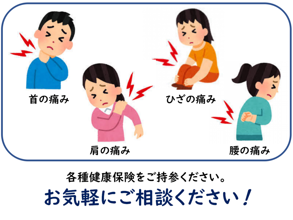 淡輪駅前整骨院では、健康保険を使った施術に対応しています。