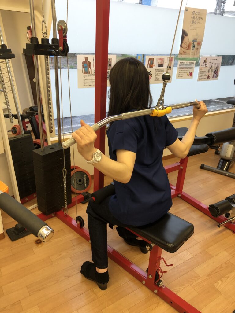 筋肉に意識しないとコントロールが難しい筋肉をマシーンを使ってトレーニングしていきます。